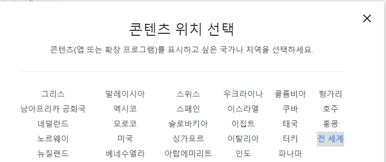 그리고 콘텐츠 위치를 대한민국에서 전세계로 변경합니다