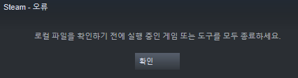 로컬 파일을 확인하기 전에 실행 중인 게임 또는 도구를 모두 종료하세요