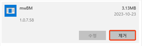 설정 > 앱 > 설치된 앱(윈11기준)에서 mwBM 응용프로그램을 선택하여 제거하면 됩니다