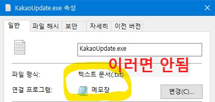 그리고 파일의 이름을 KakaoUpdate.exe로 바꿉니다 (주의!! KakaoUpdate.exe.txt 가 되면 안됩니다)