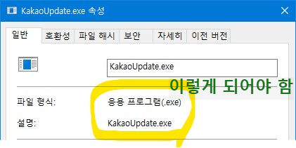 그리고 파일의 이름을 KakaoUpdate.exe로 바꿉니다 (주의!! KakaoUpdate.exe.txt 가 되면 안됩니다)